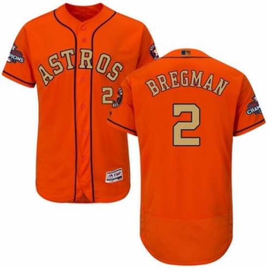 Men's Majestic Houston Astros #2 Alex Bregman Orange Alternate 2018 Gold Program Flex Base Authentic Collection MLB Jersey