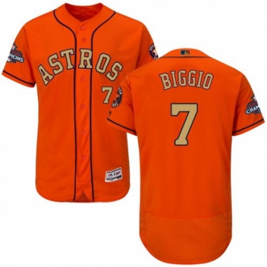 >Men's Majestic Houston Astros #7 Craig Biggio Orange Alternate 2018 Gold Program Flex Base Authentic Collection MLB Jersey