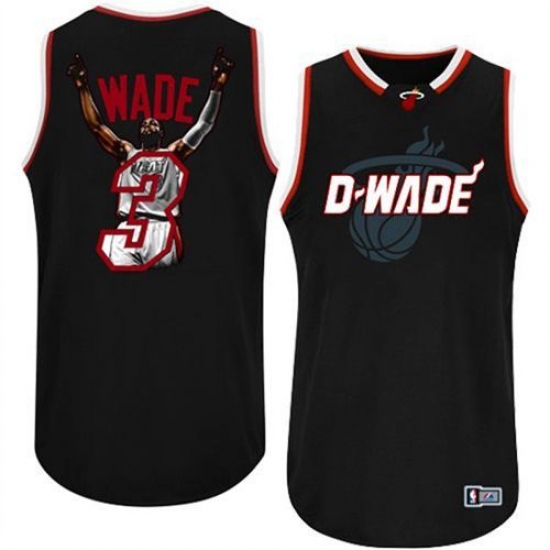 Men's Majestic Miami Heat #3 Dwyane Wade Authentic Black Athletic Notorious Fashion NBA Jersey