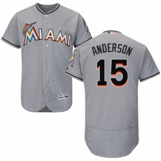 Men's Majestic Miami Marlins #15 Brian Anderson Grey Road Flex Base Authentic Collection MLB Jersey