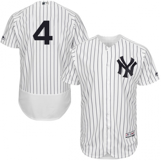 Home>MLB>New York Yankees>Lou Gehrig>Men's Majestic New York Yankees #4 Lou Gehrig White Home Flex Base Authentic Collection MLB Jersey