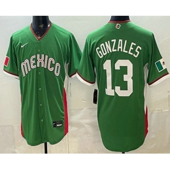 >Men's Mexico #13 Nick Gonzales Green 2026 World Baseball Classic Cool Base Jersey
