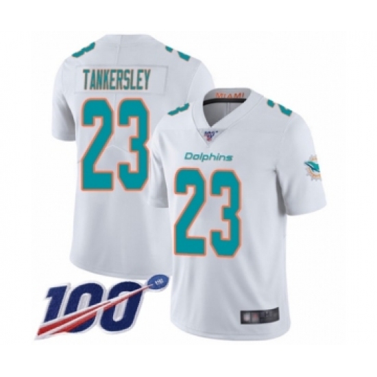Men's Miami Dolphins #23 Cordrea Tankersley White Vapor Untouchable Limited Player 100th Season Football Jersey