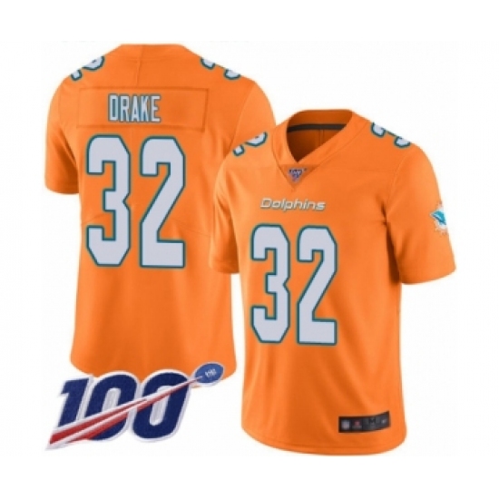 Men's Miami Dolphins #32 Kenyan Drake Limited Orange Rush Vapor Untouchable 100th Season Football Jersey
