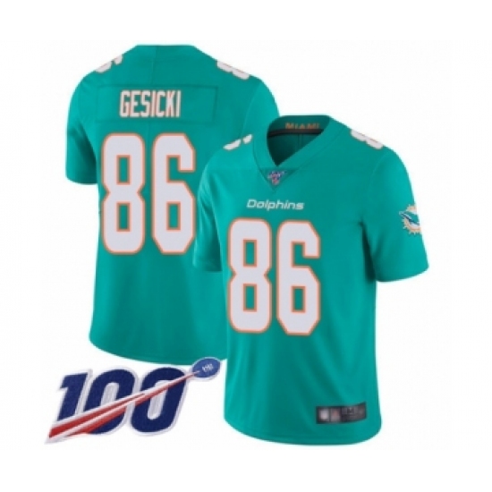 Men's Miami Dolphins #86 Mike Gesicki Aqua Green Team Color Vapor Untouchable Limited Player 100th Season Football Jersey