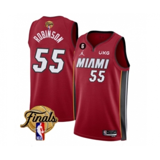 Men's Miami Heat #55 Duncan Robinson Red 2023 Finals Statement Edition With NO.6 Stitched Basketball Jersey