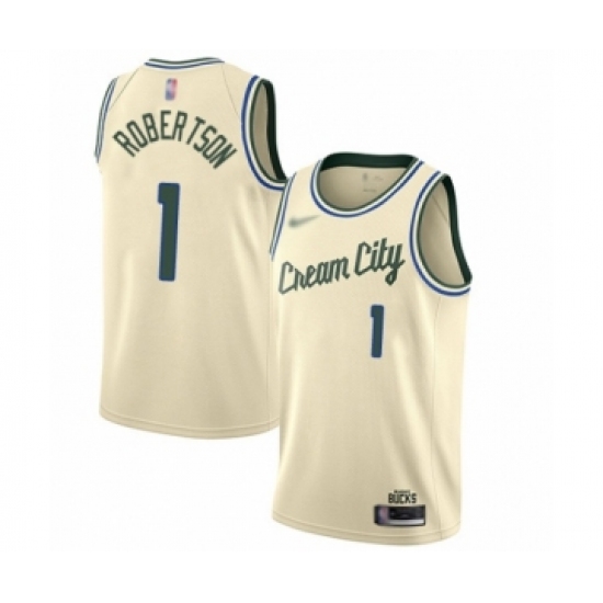 Men's Milwaukee Bucks #1 Oscar Robertson Swingman Cream Basketball Jersey - 2019 20 City Edition