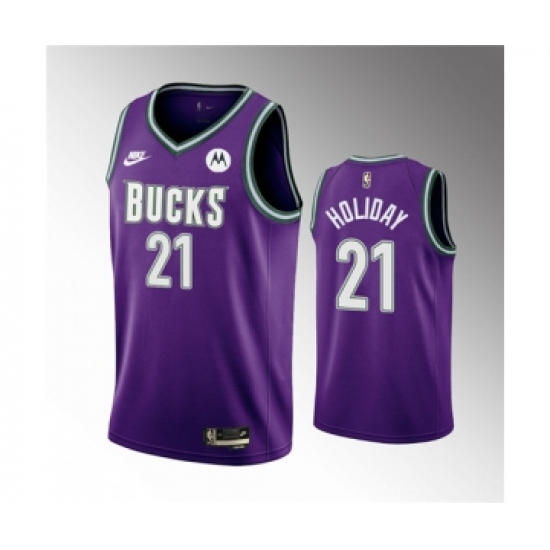 Men's Milwaukee Bucks #21 Jrue Holiday 2022-23 Purple Classic Edition Swingman Stitched Basketball Jersey