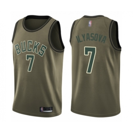 >Men's Milwaukee Bucks #7 Ersan Ilyasova Swingman Green Salute to Service Basketball Jersey