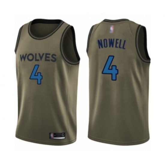 >Men's Minnesota Timberwolves #4 Jaylen Nowell Swingman Green Salute to Service Basketball Jersey