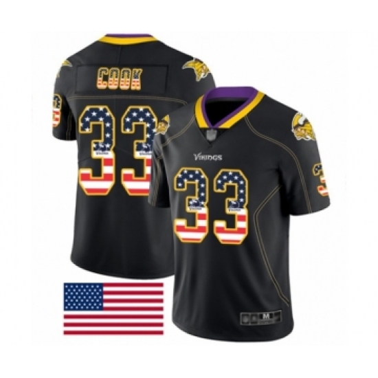 Men's Minnesota Vikings #33 Dalvin Cook Limited Black Rush USA Flag Football Jersey