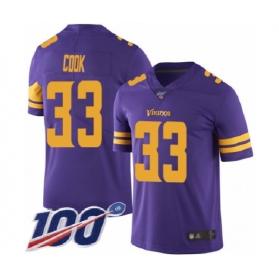 >Men's Minnesota Vikings #33 Dalvin Cook Limited Purple Rush Vapor Untouchable 100th Season Football Jersey