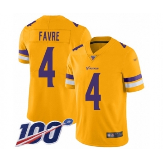 Men's Minnesota Vikings #4 Brett Favre Limited Gold Inverted Legend 100th Season Football Jersey