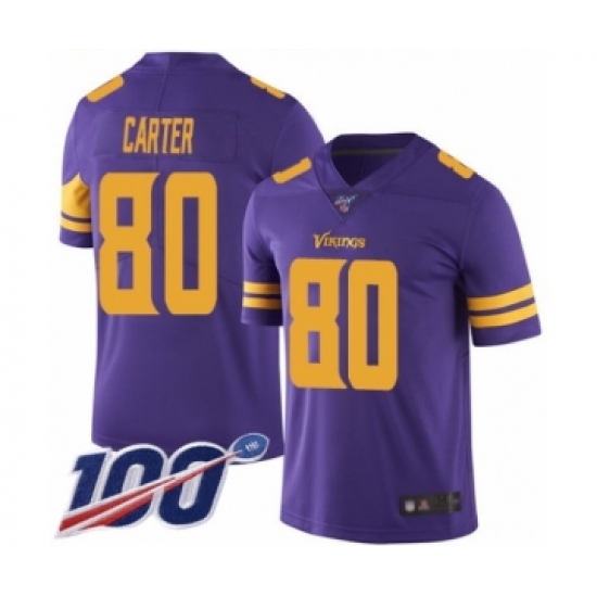 Men's Minnesota Vikings #80 Cris Carter Limited Purple Rush Vapor Untouchable 100th Season Football Jersey