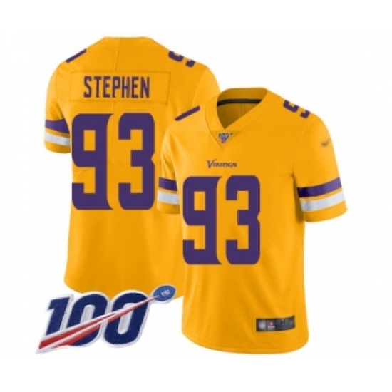 >Men's Minnesota Vikings #93 Shamar Stephen Limited Gold Inverted Legend 100th Season Football Jersey