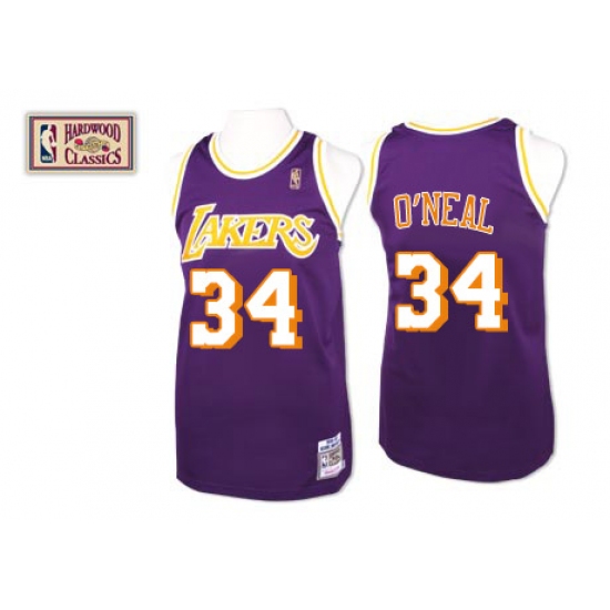 Men's Mitchell and Ness Los Angeles Lakers #34 Shaquille O'Neal Swingman Purple Throwback NBA Jersey
