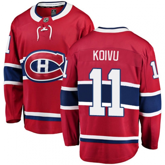 Men's Montreal Canadiens #11 Saku Koivu Authentic Red Home Fanatics Branded Breakaway NHL Jersey