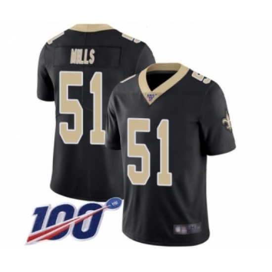 Men's New Orleans Saints #51 Sam Mills Black Team Color Vapor Untouchable Limited Player 100th Season Football Jersey