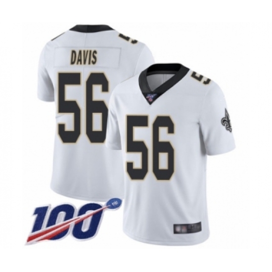 >Men's New Orleans Saints #56 DeMario Davis White Vapor Untouchable Limited Player 100th Season Football Jersey