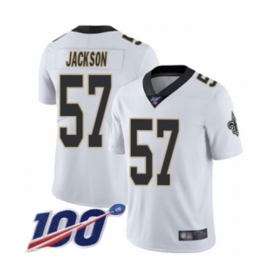 >Men's New Orleans Saints #57 Rickey Jackson White Vapor Untouchable Limited Player 100th Season Football Jersey