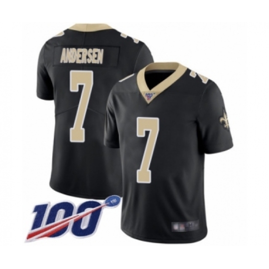 >Men's New Orleans Saints #7 Morten Andersen Black Team Color Vapor Untouchable Limited Player 100th Season Football Jersey