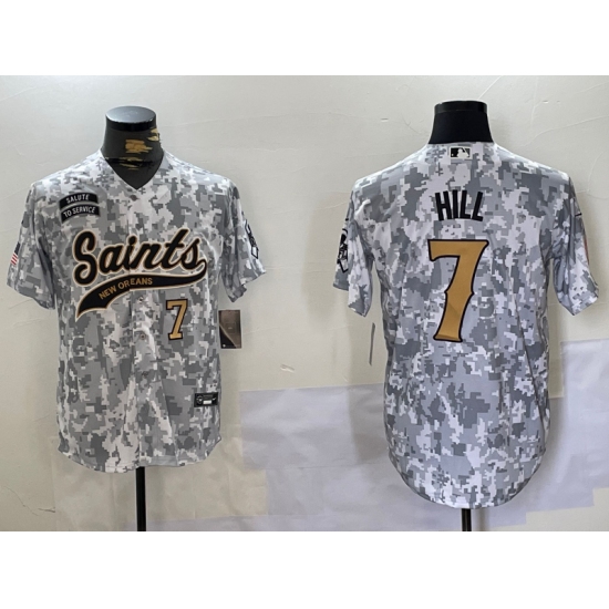 >Men's New Orleans Saints #7 Taysom Hill Arctic Camo 2024 Salute to Service Stitched Baseball Jerseys