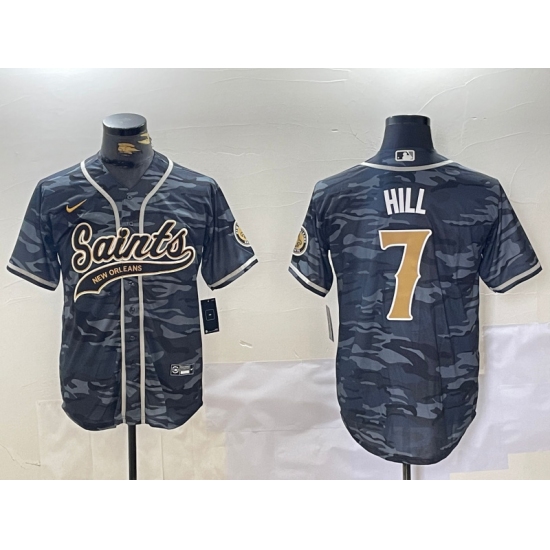 >Men's New Orleans Saints #7 Taysom Hill Grey Camo With Cool Base Stitched Baseball Jersey
