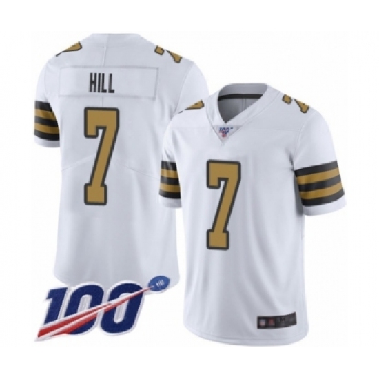 >Men's New Orleans Saints #7 Taysom Hill Limited White Rush Vapor Untouchable 100th Season Football Jersey