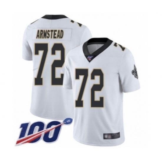 Men's New Orleans Saints #72 Terron Armstead White Vapor Untouchable Limited Player 100th Season Football Jersey