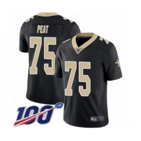 Men's New Orleans Saints #75 Andrus Peat Black Team Color Vapor Untouchable Limited Player 100th Season Football Jersey