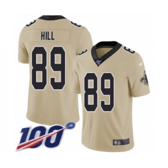 >Men's New Orleans Saints #89 Josh Hill Limited Gold Inverted Legend 100th Season Football Jersey