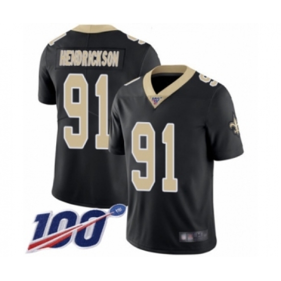 >Men's New Orleans Saints #91 Trey Hendrickson Black Team Color Vapor Untouchable Limited Player 100th Season Football Jersey