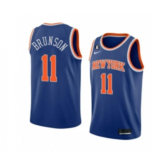 Men's New Yok Knicks #11 Jalen Brunson Blue With NO.6 Stitched Basketball Jersey