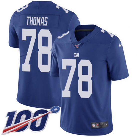 Men's New York Giants #78 Andrew Thomas Royal Blue Team Color Stitched NFL 100th Season Vapor Untouchable Limited Jersey