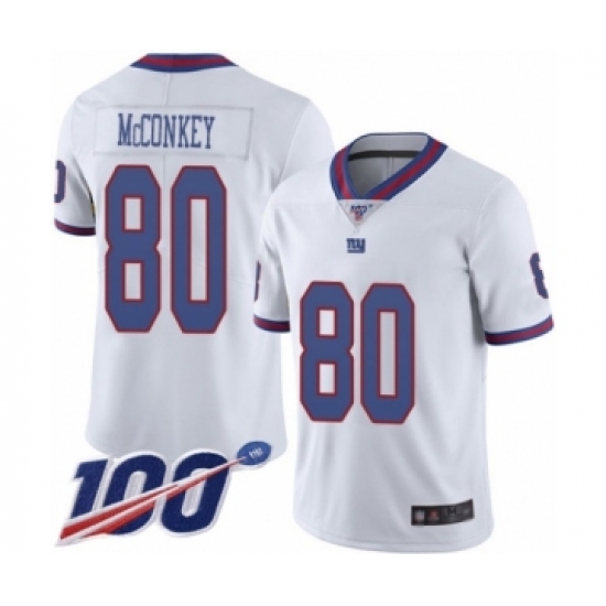 >Men's New York Giants #80 Phil McConkey Limited White Rush Vapor Untouchable 100th Season Football Jersey
