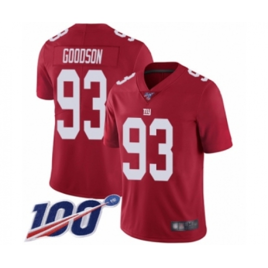 >Men's New York Giants #93 B.J. Goodson Red Limited Red Inverted Legend 100th Season Football Jersey