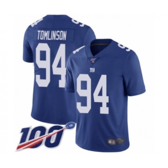 Men's New York Giants #94 Dalvin Tomlinson Royal Blue Team Color Vapor Untouchable Limited Player 100th Season Football Jersey