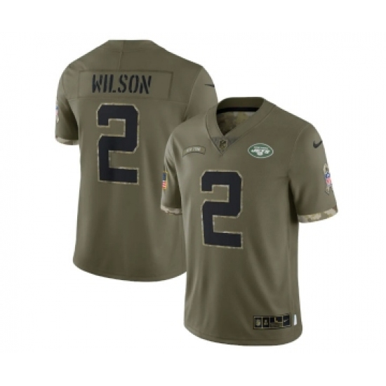Men's New York Jets #2 Zach Wilson 2022 Olive Salute To Service Limited Stitched Jersey