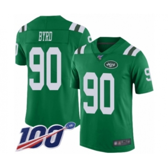 >Men's New York Jets #90 Dennis Byrd Limited Green Rush Vapor Untouchable 100th Season Football Jersey