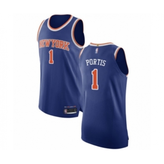 >Men's New York Knicks #1 Bobby Portis Authentic Royal Blue Basketball Jersey - Icon Edition