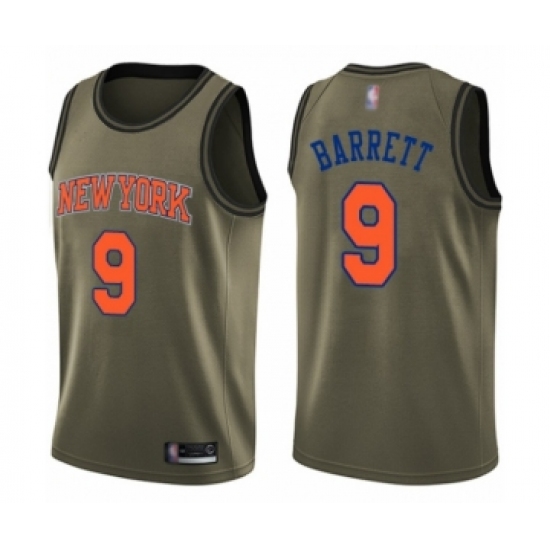 >Men's New York Knicks #9 RJ Barrett Swingman Green Salute to Service Basketball Jersey