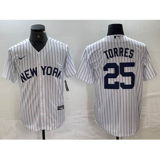 >Men's New York Yankees #25 Gleyber Torres White 2024 Cool Base Stitched Jerseys