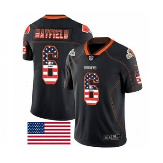 Men's Nike Cleveland Browns #6 Baker Mayfield Limited Black Rush USA Flag NFL Jersey