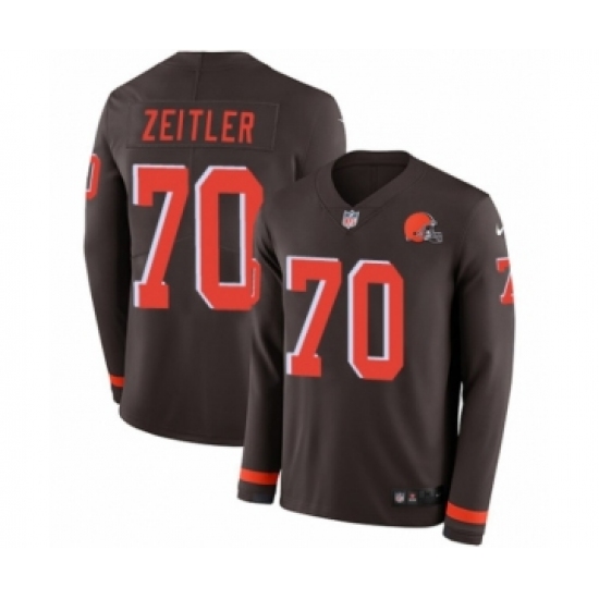 >Men's Nike Cleveland Browns #70 Kevin Zeitler Limited Brown Therma Long Sleeve NFL Jersey
