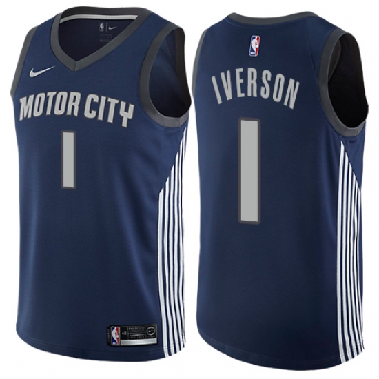 Men's Nike Detroit Pistons #1 Allen Iverson Authentic Navy Blue NBA Jersey - City Edition