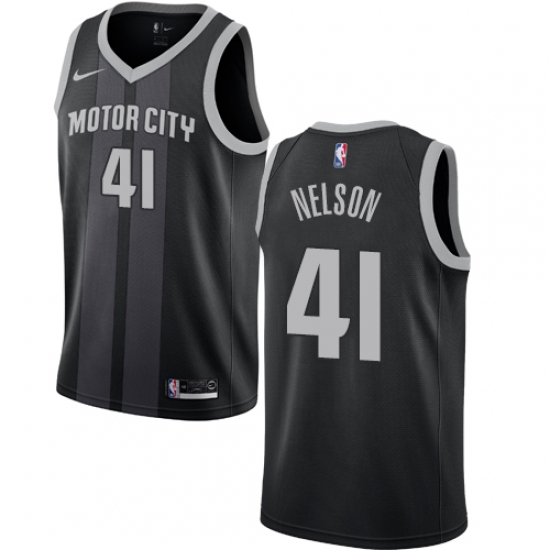 >Men's Nike Detroit Pistons #41 Jameer Nelson Swingman Black NBA Jersey - City Edition