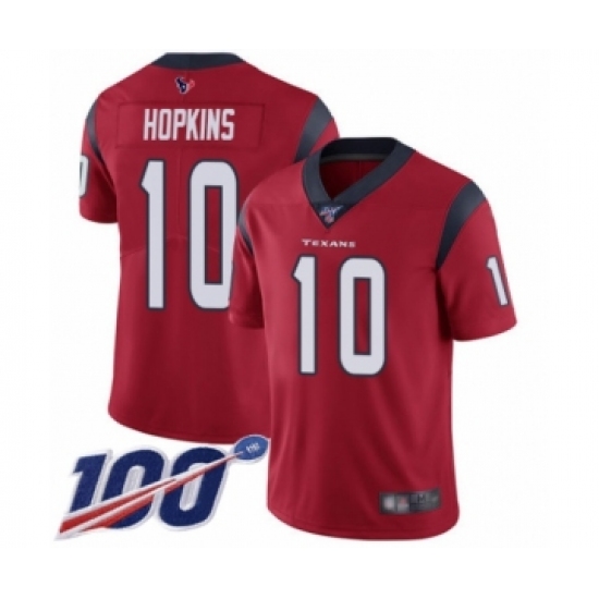 >Men's Nike Houston Texans #10 DeAndre Hopkins Red Alternate Vapor Untouchable Limited Player 100th Season NFL Jersey
