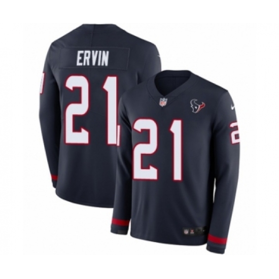 >Men's Nike Houston Texans #21 Tyler Ervin Limited Navy Blue Therma Long Sleeve NFL Jersey