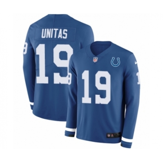 Men's Nike Indianapolis Colts #19 Johnny Unitas Limited Blue Therma Long Sleeve NFL Jersey