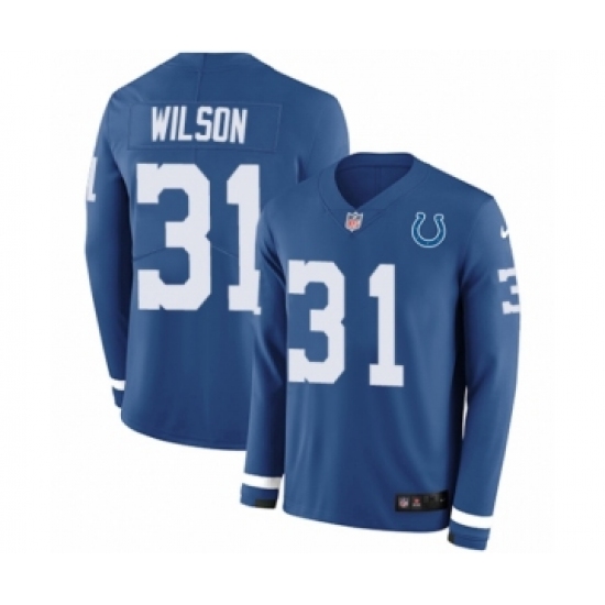 >Men's Nike Indianapolis Colts #31 Quincy Wilson Limited Blue Therma Long Sleeve NFL Jersey